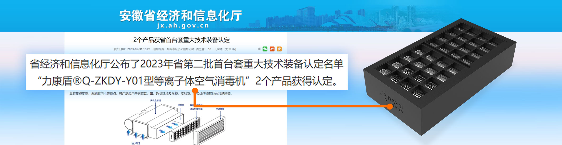 入選2023年第二批首臺(tái)套-力康盾?Q-ZKDY-Y01型等離子體空氣消毒機(jī)