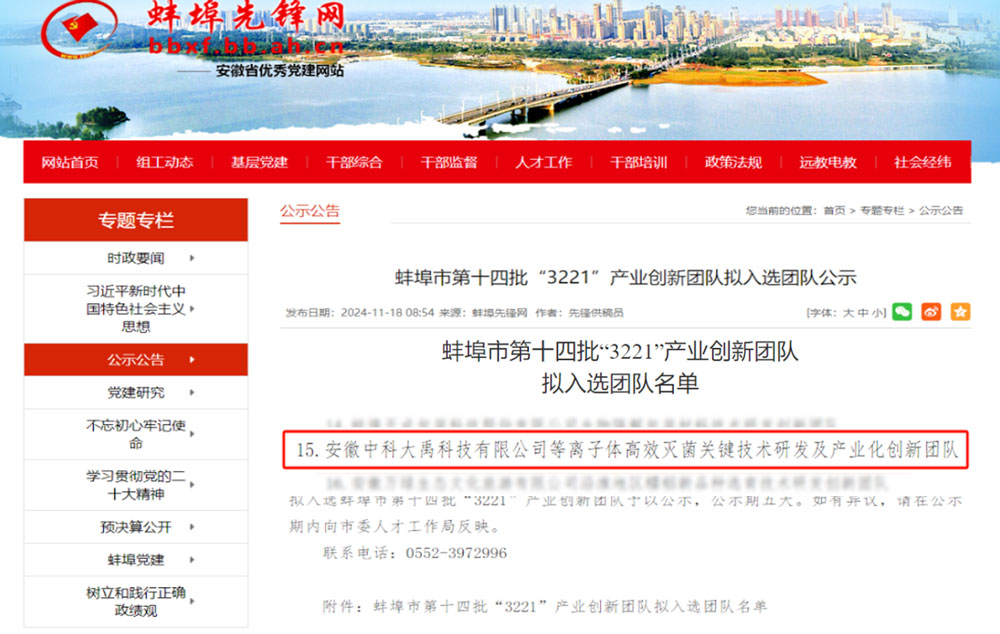 中科大禹入選蚌埠市第十四批“3221”產(chǎn)業(yè)創(chuàng)新團(tuán)隊(duì)